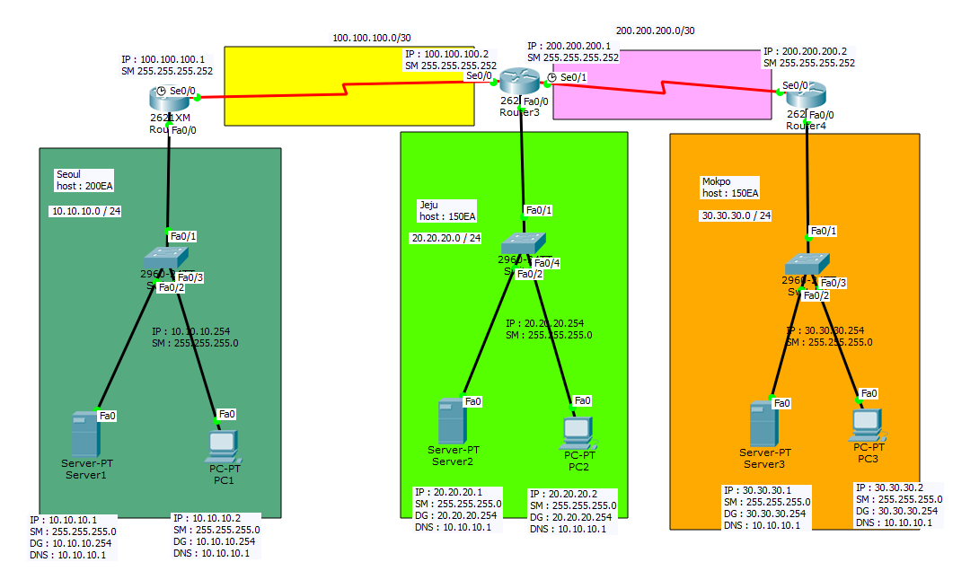 이번 글은 CISCO 내에서 switch vlan 설정에 대해 알아보도록 하겠습니다. 스위치에서 Vlan을 사용하는 이유는 크게 두가지 입니다 1. 보안성이 향상된다. 2. 브로드캐스트 도메인을 분리 할 수 있다. 그리하여, CISCO Packet tracer 프로그램을 통해 Vlan 설정하는 방법에 대해 알아보도록 하겠습니다. 1. 스위치 당 3개의 pc가 있는데 이 pc는 왼쪽부터 fa0/1 fa 0/6 fa 0/11 포트로 연결되어 있다. 2. 각각의 포트에 맞춰 vlan 범위를 설정 해줍니다. 아래는 해당 스위치의 콘솔창에서 진행 하면된다. 1 2 3 4 5 6 7 8 9 10 11 12 13 en ## 관리자 모드 접속 conf t ## 전역설정모드 vlan 10 ### vlan 10번 생성 n..